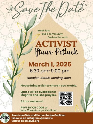 Join us for an Activist Iftaar Potluck — a space to break fast, build community, and sustain the work.